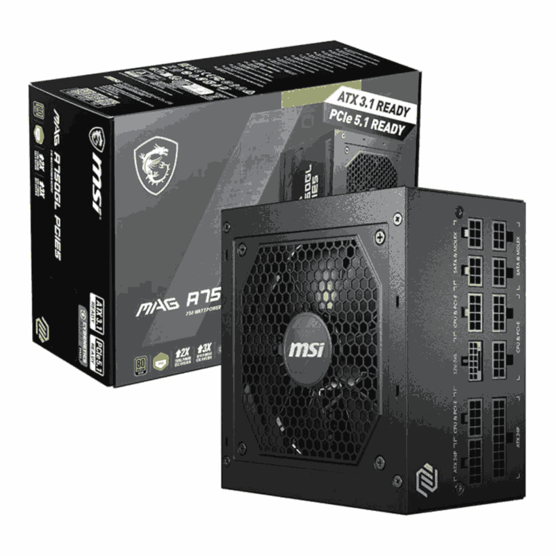 MSI 750W (MAG A750GL PCIE5) ATX 3.1 PSU Fully Modular 80+/Cybenetics Gold LLC Full-Bridge PCIe 5.1