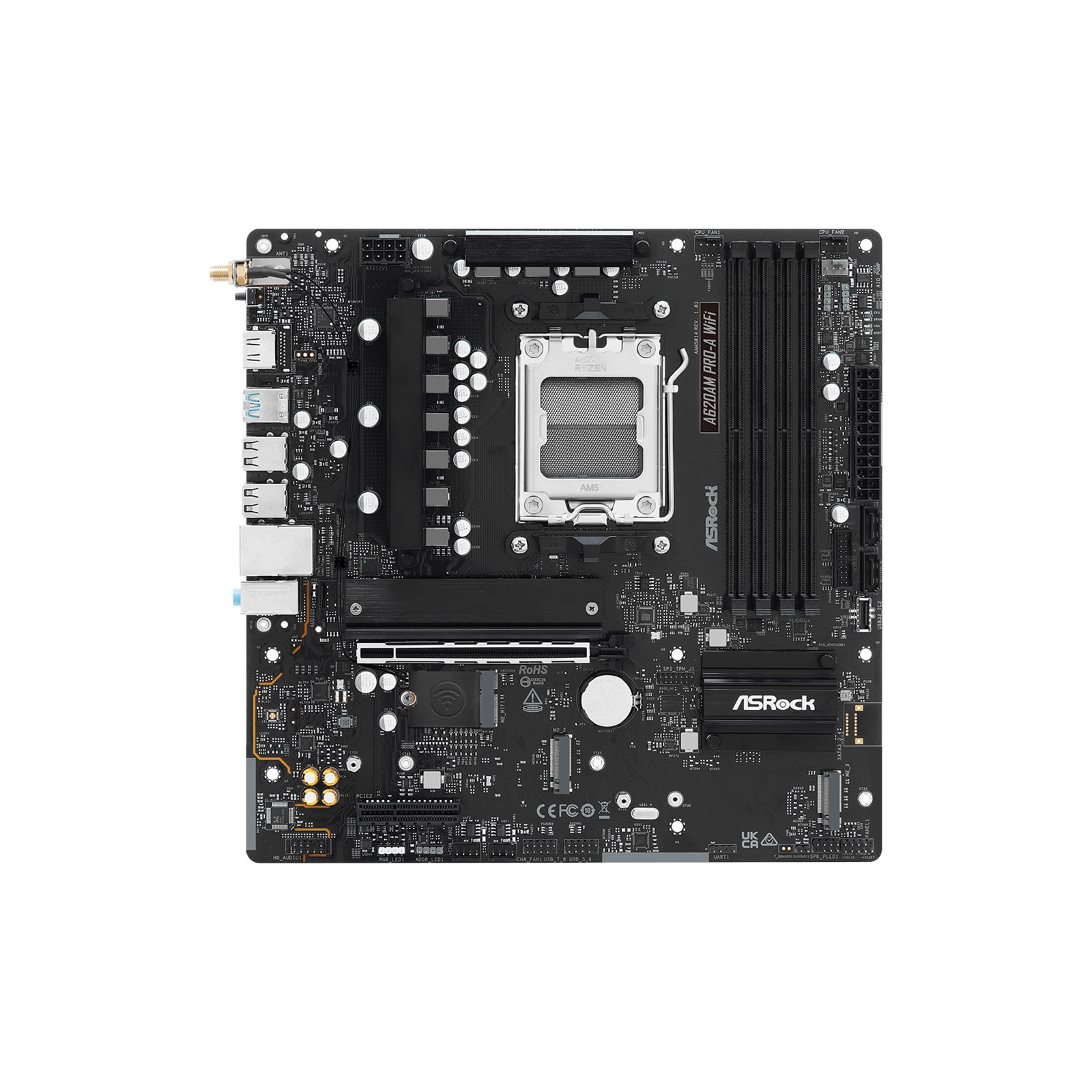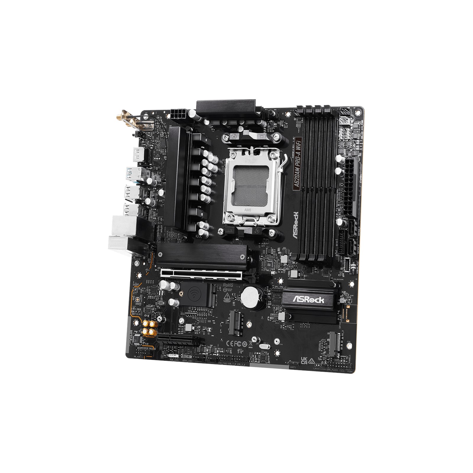 ASRock A620AM PRO-A WiFi Micro ATX Motherboard – Compact DDR5 Power & Wi-Fi 6E for AMD AM5