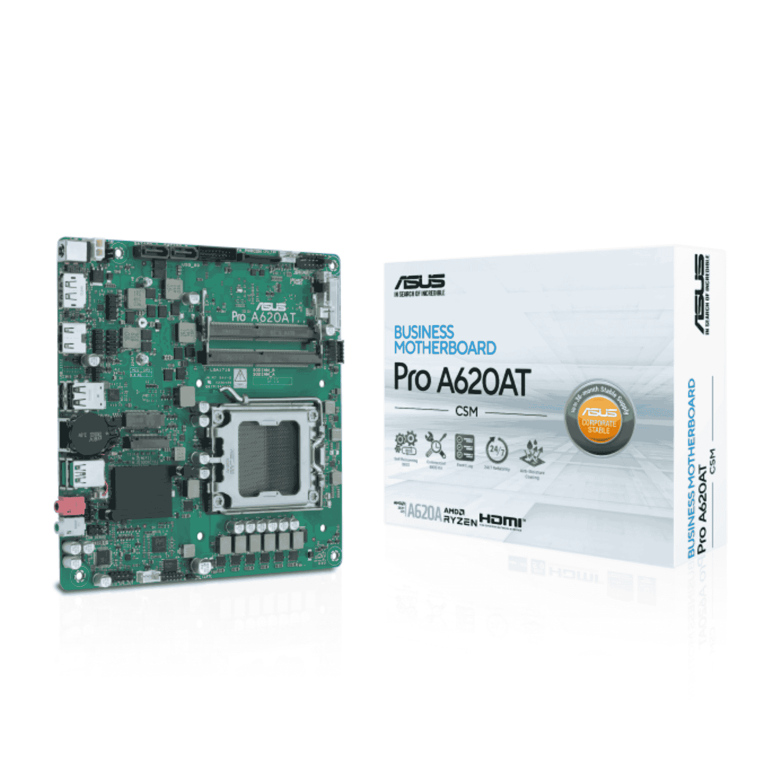 As part of ASUS’s Corporate Stable Model (CSM) series, this motherboard offers enhanced security, remote management, and longevity assurance for commercial applications. With Realtek 7.1 surround audio, robust LAN connectivity, and industrial-grade components, it provides dependable performance for long-term deployment. Backed by a 3-year warranty, the PRO A620AT-CSM is built for durability, flexibility, and stable operation in demanding environments.