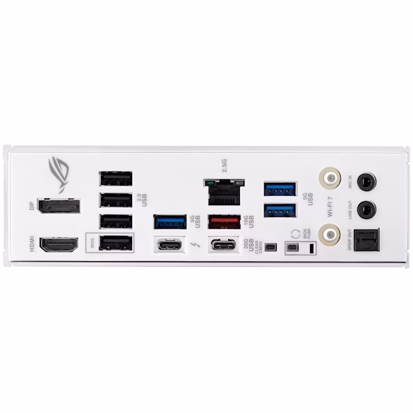 | Back Panel I/O | 1 x Thunderbolt 4 (Type-C) 1 x USB 20Gbps (Type-C) 1 x USB 10Gbps (Type-A) 3 x USB 5Gbps (Type-A) 4 x USB 2.0 1 x HDMI, 1 x DisplayPort 1 x Intel 2.5Gb LAN 1 x Wi-Fi Module 2 x Audio Jacks, 1 x Optical S/PDIF 1 x BIOS FlashBack, 1 x Clear CMOS |