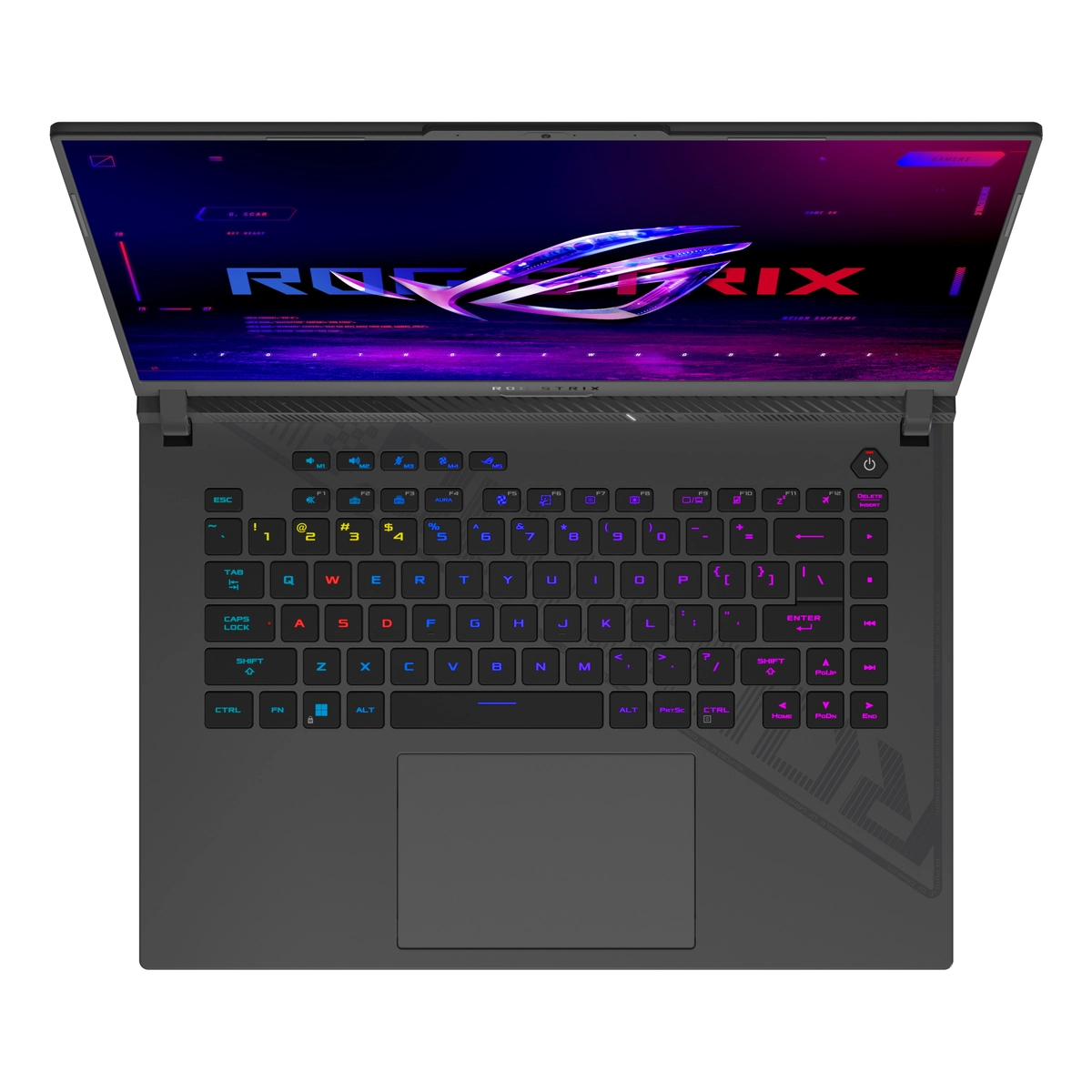 The difference between victory and defeat can be separated by a single keystroke, so the Strix G16 has a full-size keyboard designed to secure the win. Overstroke technology offers sublime work and play, reducing key actuation and improving responsiveness. Built with gamers in mind, the keyboard features spaced function keys for intuitive identification and dedicated hotkeys for quick access to essential commands. Large arrow keys allow for more accurate control in the heat of battle. A larger touchpad means easier tracking across all of your applications, while per-key RGB lighting lets you choose from millions of colours on every key for endless customisation. You can also create game specific layouts via Armoury Crate, making every game feel unique.