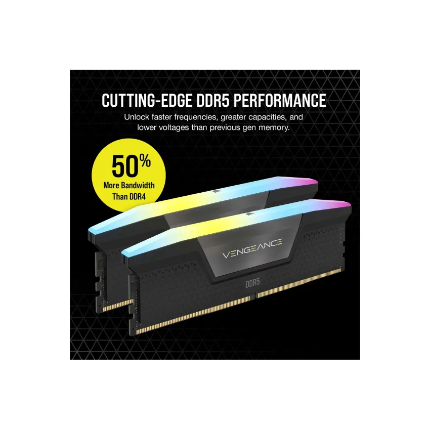The Corsair Vengeance RGB 32GB DDR5 kit delivers exceptional performance for gaming, content creation and high-intensity multitasking. Running at 6000MHz, it offers significantly faster data transfer rates and improved system responsiveness, making it ideal for builders who demand cutting-edge speed and reliability. With 2 × 16GB modules, users benefit from both capacity and bandwidth for smooth overall performance.