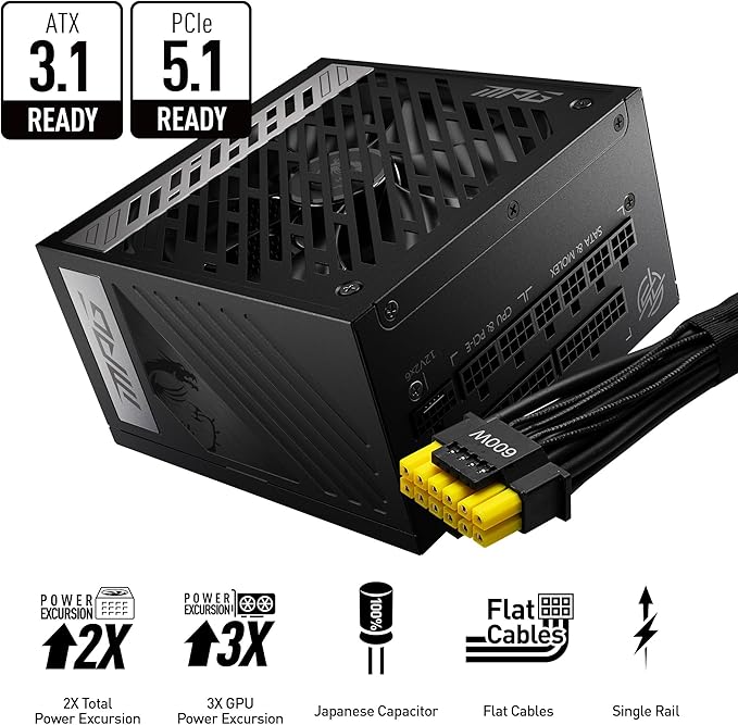 The MSI 1000W ATX 3.1 Power Supply is engineered to deliver efficient, stable, and reliable power for high-performance PC builds. Designed for next-generation GPUs and platforms, it features full ATX 3.1 and PCIe 5.1 compatibility, making it ideal for modern gaming, workstation, and enthusiast systems.