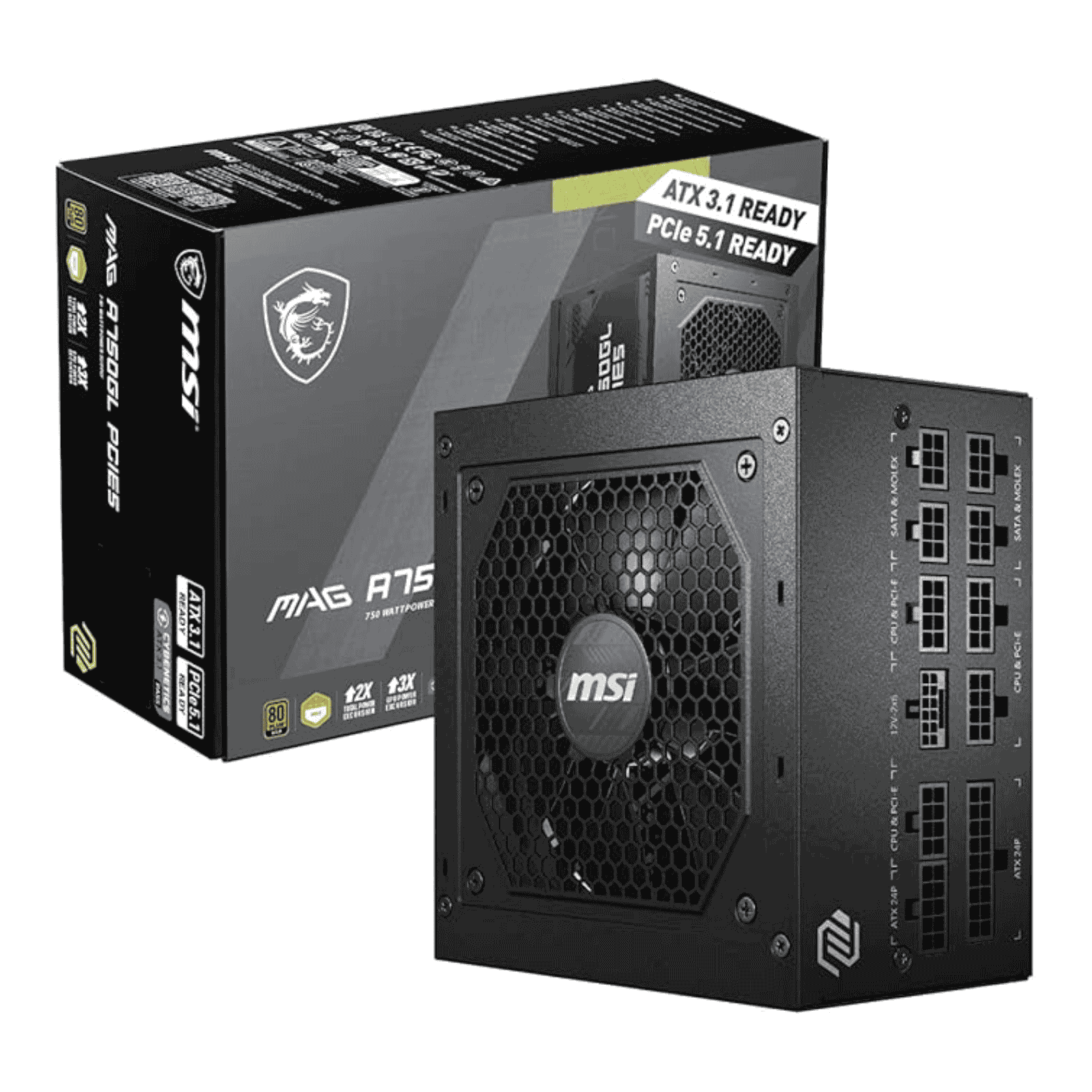 MSI 750W (MAG A750GL PCIE5) ATX 3.1 PSU Fully Modular 80+/Cybenetics Gold LLC Full-Bridge PCIe 5.1