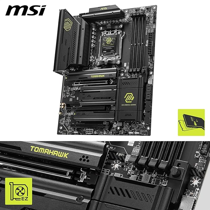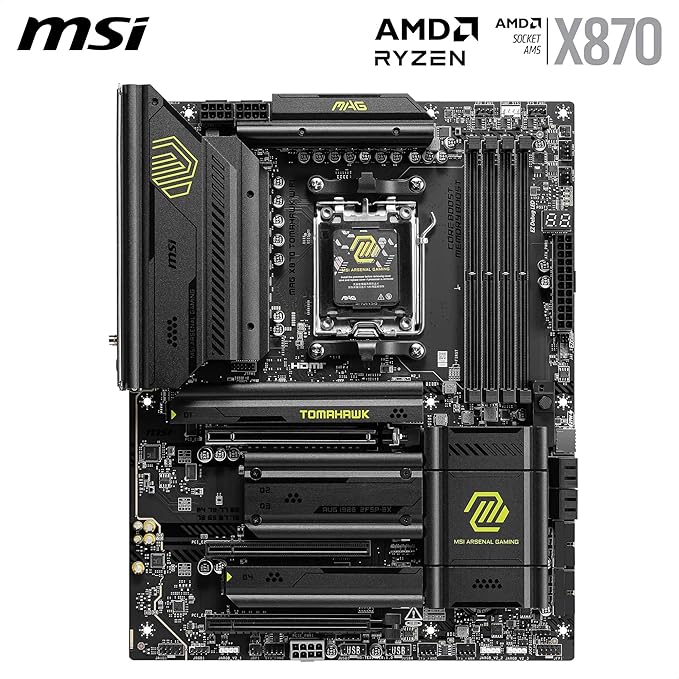The MSI MAG X870 TOMAHAWK WIFI is engineered for next-generation AMD AM5 processors, pairing the advanced AMD X870 chipset with robust power delivery for high-end desktop performance. With support for DDR5 dual-channel memory, AMD EXPO profiles, JEDEC speeds, and overclocking up to 8400+ MHz, it ensures exceptional responsiveness for gaming, creation, and heavy multitasking. Its compatibility with Ryzen 9000, 8000, and 7000 Series CPUs allows users to fully exploit the potential of PCIe 5.0 storage and graphics, delivering cutting-edge bandwidth and speed.