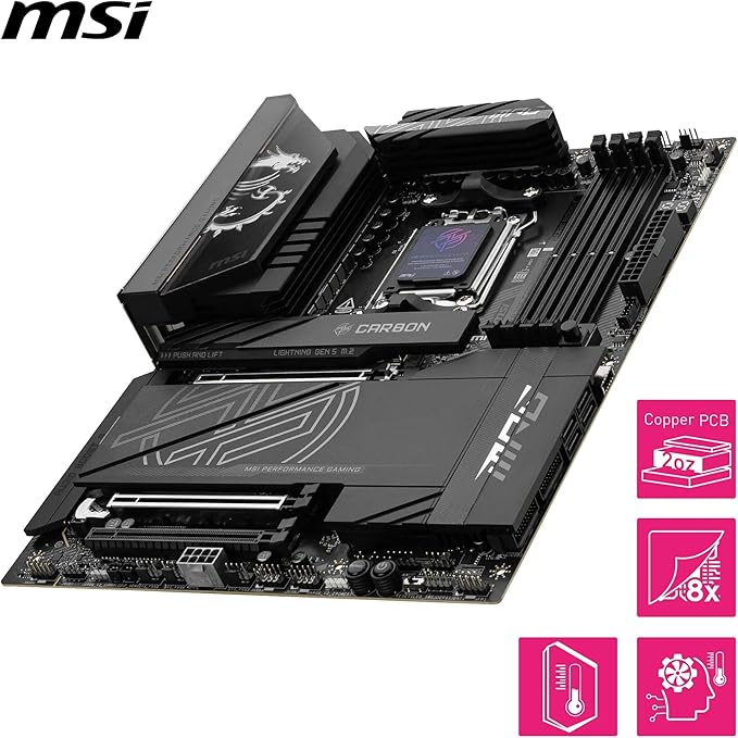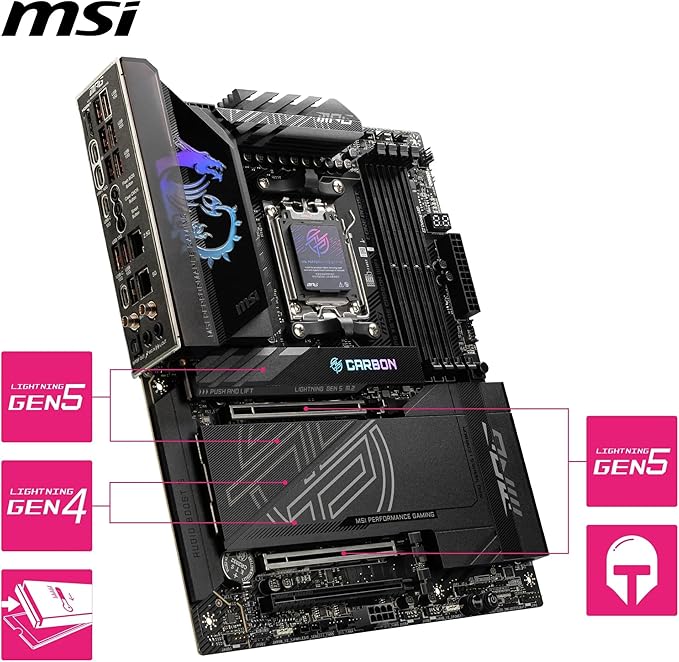 MSI MPG X870E CARBON WIFI AMD X870E AM5 ATX 4 DDR5 HDMI 2 USB4 Wi-Fi 7 5G & 2.5G LAN RGB 4x M.2