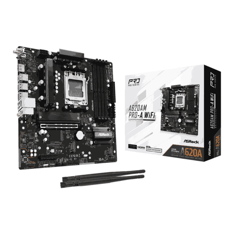 ASRock A620AM PRO-A WiFi Micro ATX Motherboard for AMD AM5 CPUs